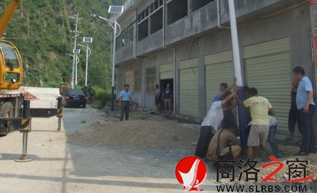 商洛日?qǐng)?bào)訊(劉春榮)近日,丹鳳縣月日鎮(zhèn)投資五十多萬(wàn)元在江灣村實(shí)施亮化工程建設(shè),安裝太陽(yáng)能路燈三十三桿里程。圖為施工人員在新建的江灣移民小區(qū)安裝路燈。