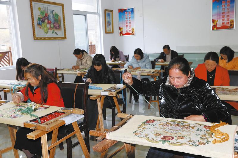 2022年,新冠疫情期間,江芳和村里婦女們繡的一些作品賣不出去,駐村工作隊(duì)了解到這一情況后,及時(shí)與葛良慧取得聯(lián)系,沒(méi)想到葛良慧全部收購(gòu)了她們的作品,并一次性支付了20多萬(wàn)元。此后,江芳便組織了金絲峽鎮(zhèn)50多名繡娘常年跟著葛良慧干。
