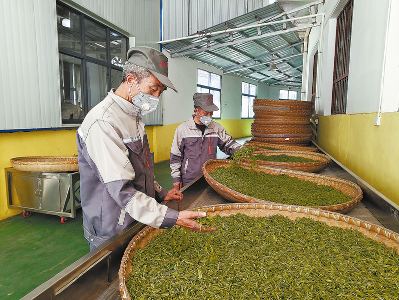 在綠晟茶葉有限責任公司,象園村一組村民黃顯軍正在安排工人將剛采回來的鮮葉攤開晾曬。黃顯軍是公司加工車間的一名管理人員,每年3月至6月,是他最繁忙的時候。