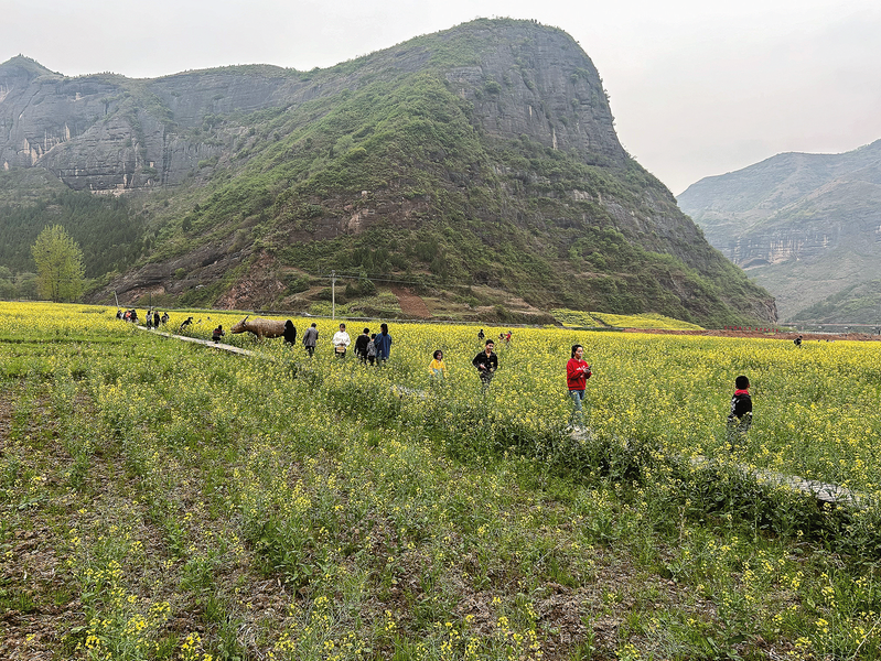 “我們是從湖北十堰過來的,也是第一次來這里,十堰離這邊比較近,聽別人說這兒挺美的,就慕名前來游玩打卡。”正在油菜花海里拍照留念的宋女士說,“我們都是老師,這兩天放假,剛好出來走一走、看一看,油菜花香讓人特別舒服。”