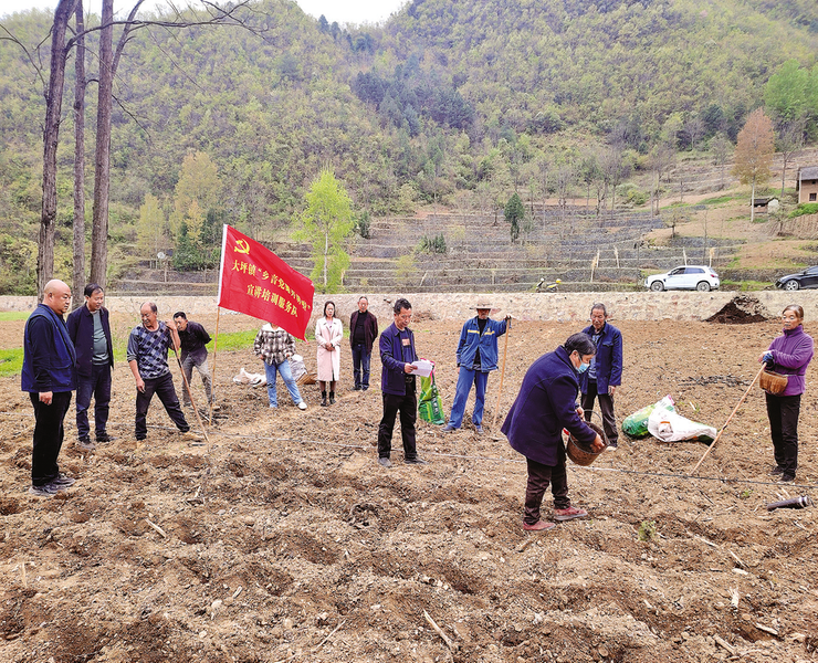 4月1日,在大坪鎮(zhèn)芋園村“鄉(xiāng)音黨課”現(xiàn)場,縣委黨校工作人員和農(nóng)技中心技術(shù)人員為群眾解讀相關(guān)文件精神,并進(jìn)行玉米提單產(chǎn)增密度種植技術(shù)培訓(xùn)。