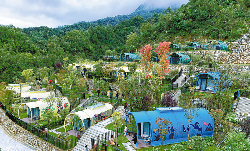 “我們的創意民宿罐罐屋以四季區分,將其分別涂成4種顏色,春為粉色,夏為綠色,秋為黃色,冬為藍色。”童話磨石溝景區經理王飛介紹,童話磨石溝是一個研學游、親子游的互動空間,讓孩子們親近自然、體驗農耕,在玩樂中學習,培養他們的探索力和創造力。景區設置歡樂農場、奇幻旅行和童話谷創意民宿3個主題,集住宿、體驗、教育、娛樂于一體,年接待游客近10萬人次。