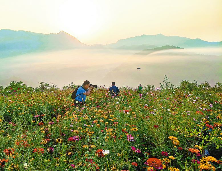 初秋的鎮安縣海棠山,日出、花海、霧海交織在一起相互映襯,構成了一幅如夢似幻的畫卷,讓人沉醉其中,流連忘返,吸引了西安等地不少游客前來觀賞拍照。