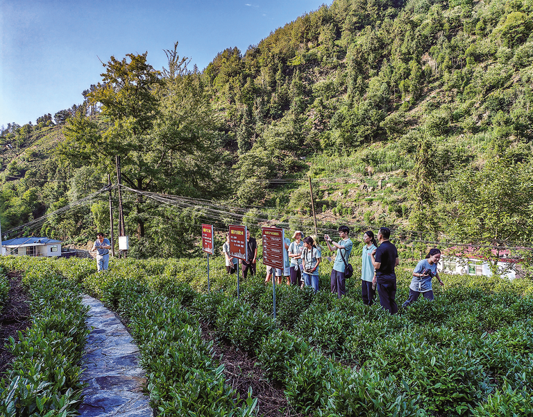“象園村以王莽山下為中心,分布在五坡三溝二川之中,地理條件并不優(yōu)越。村上的茶產(chǎn)業(yè)能有現(xiàn)在的規(guī)模,離不開領(lǐng)導(dǎo)苦抓、干部苦幫、群眾苦干的‘三苦精神’。”象園村黨支部書記劉道儉看著山坡長勢喜人的茶樹,向記者介紹起村上茶產(chǎn)業(yè)的發(fā)展之路,“象園村整體發(fā)展由黨支部制定產(chǎn)業(yè)發(fā)展思路,統(tǒng)一村組干部和全體黨員的思想;黨員干部聯(lián)組包戶,引導(dǎo)群眾發(fā)展茶葉產(chǎn)業(yè)并做好全程指導(dǎo);群眾落實發(fā)展規(guī)劃,精心科管,扎實苦干,才做到了現(xiàn)在的規(guī)模。”