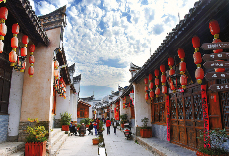 漫步具有江南水鄉(xiāng)韻味的云蓋寺古鎮(zhèn)老街,青石板鋪就的街道蜿蜒曲折,每一塊石板都承載著無數(shù)行人的足跡,訴說著往昔的故事。街道兩旁,明清古建筑錯(cuò)落有致,雕梁畫棟,古色古香。“四水歸堂”式的天井庭院里,那些斑駁的墻壁上隱約可見彩畫和磚雕,依稀勾勒出當(dāng)年的繁華盛景。