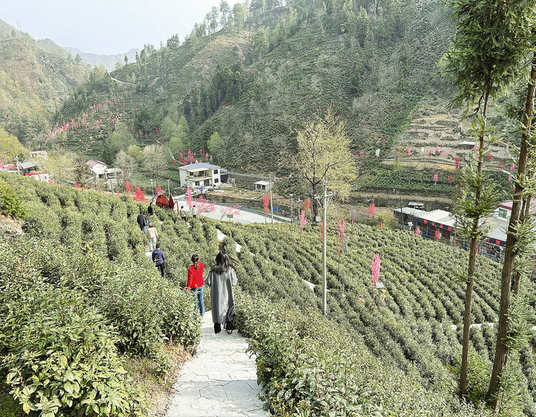 游客在茶園里游玩