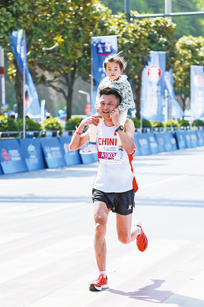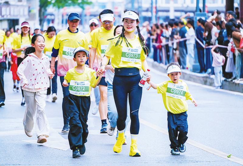 “這是我第一次在現場看馬拉松!”10歲的觀賽者許子航舉著親手畫的加油牌,上面寫著“跑過我家門口”。他跟著媽媽沿賽道跑了一百來米,一臉高興地說:“明年我要報歡樂跑,獎牌要掛在書包上天天帶著!”