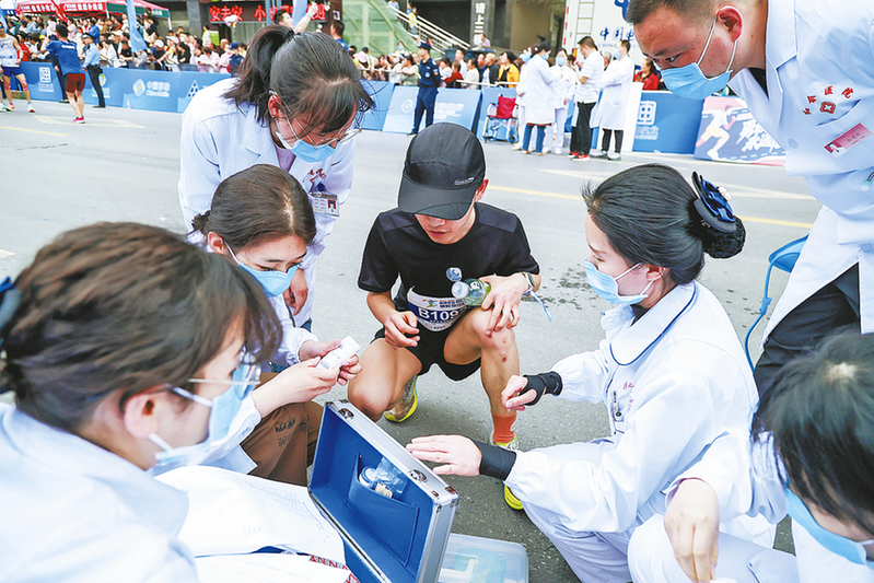 賽事組委會動員500名志愿者化身“流動服務站”,他們在比賽的起點、賽道、終點向參賽選手提供專業、優質、貼心的服務,為賽事注入了青春活力。沿途群眾自發為選手加油助威,不少居民提前在路邊等待,專門為選手鼓掌打氣,部分企業員工組成啦啦隊,用統一手勢為選手鼓勁。
