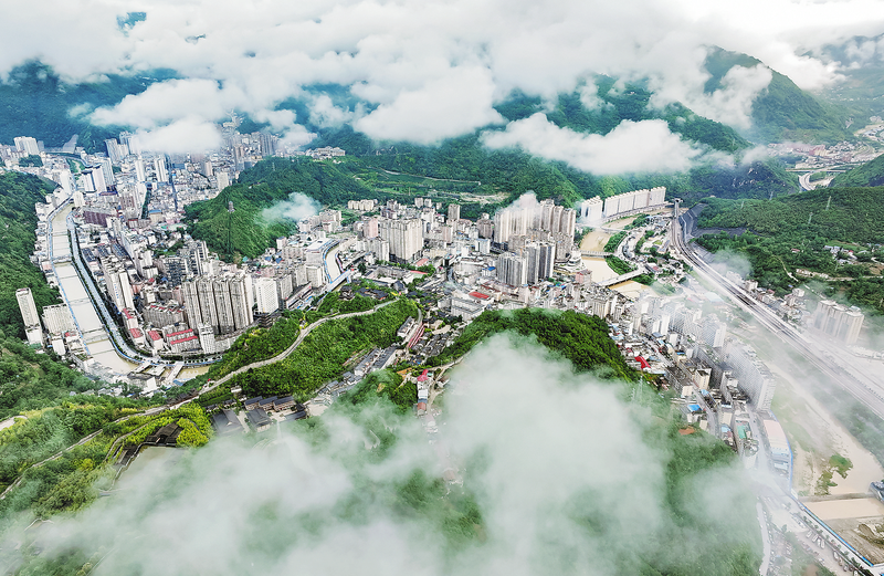 7月1日,雨后的鎮安縣城,青山環抱,河流蜿蜒,籠罩在潔白的云霧之下,宛如大山深處的一條玉帶,令人心曠神怡。