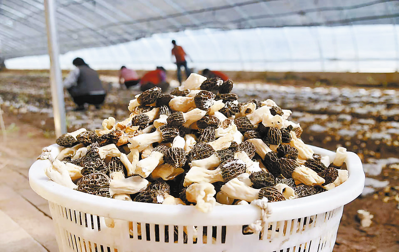 在蒿坪村的食用菌產業(yè)園里,豐收的羊肚菌甚是喜人。